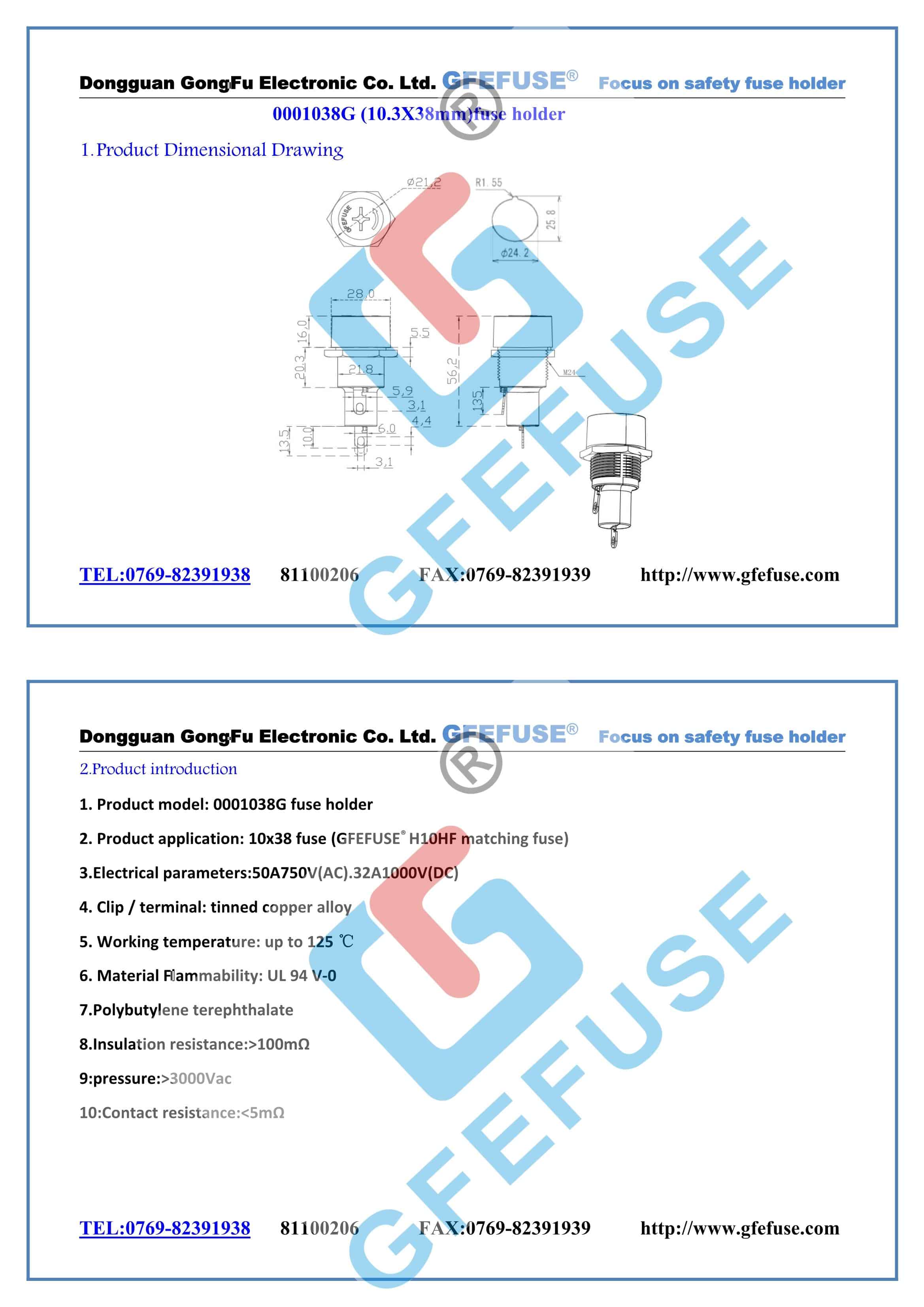 1. 產品型號:0001038G保險絲座