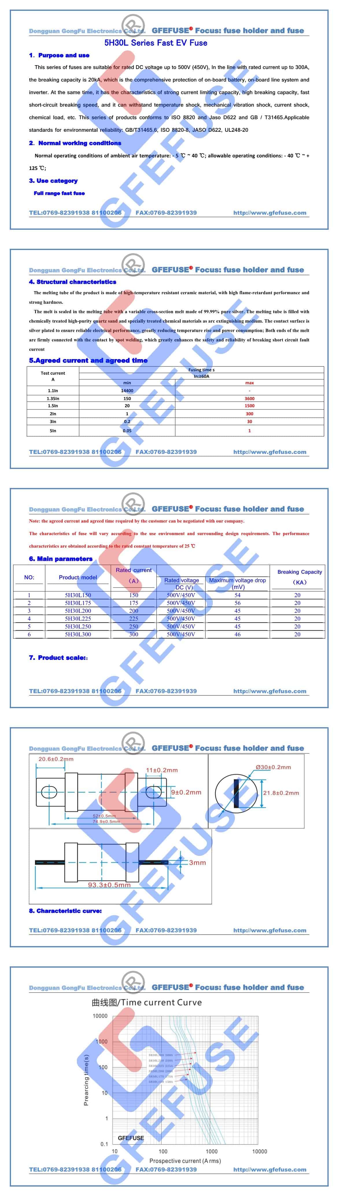 5H30L快速直流熔斷器(150A-300A)500V450V
