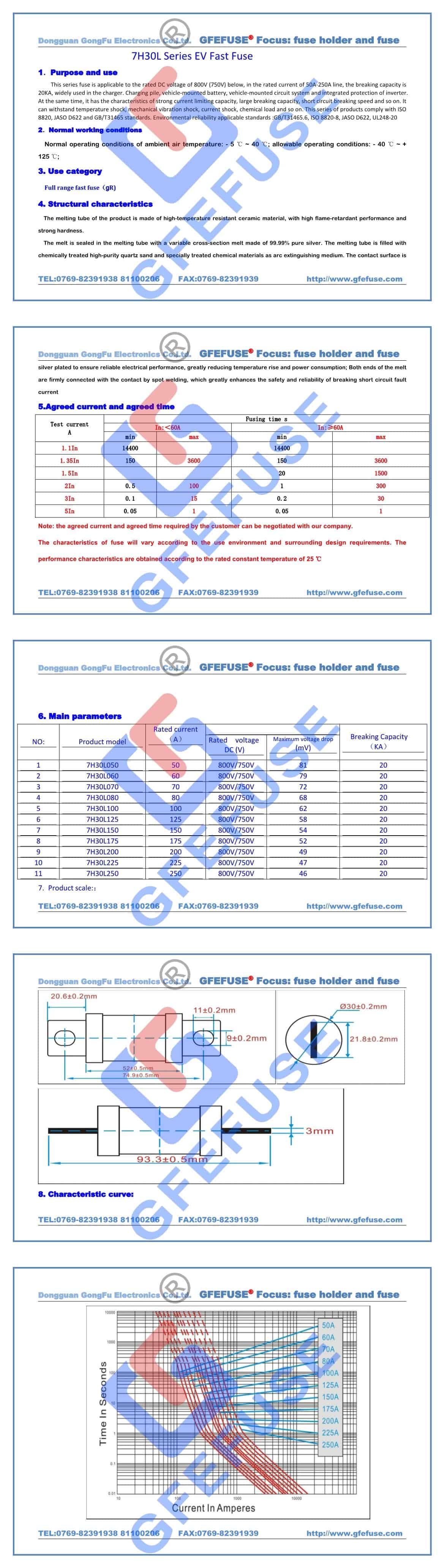 7H30L快速直流熔斷器(50A-250A)750V800V